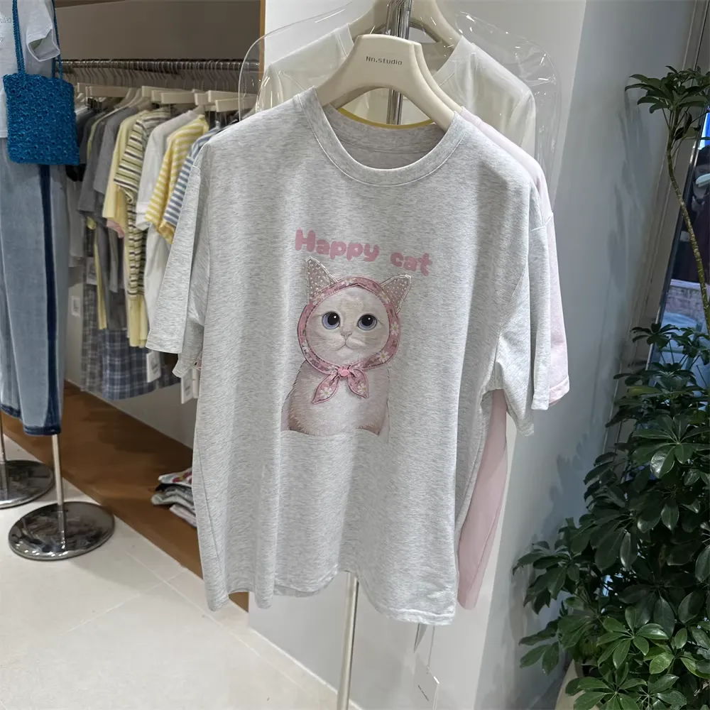 Discover the perfect blend of playful design and high-end textile quality. This "Happy Cat" tee is crafted from our signature 220 GSM heavyweight 100% cotton, featuring a stunningly detailed cat graphic enhanced with hand-finished 3D sequin embellishments on the ears and a textured floral bonnet patch.