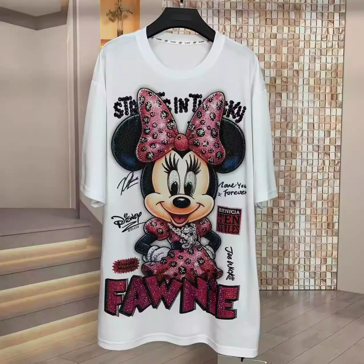 A151 - Luxury Bling Minnie Mouse Graphic Tee - Full Rhinestone Crystal Oversized T-Shirt - 320g Heavyweight Premium Cotton