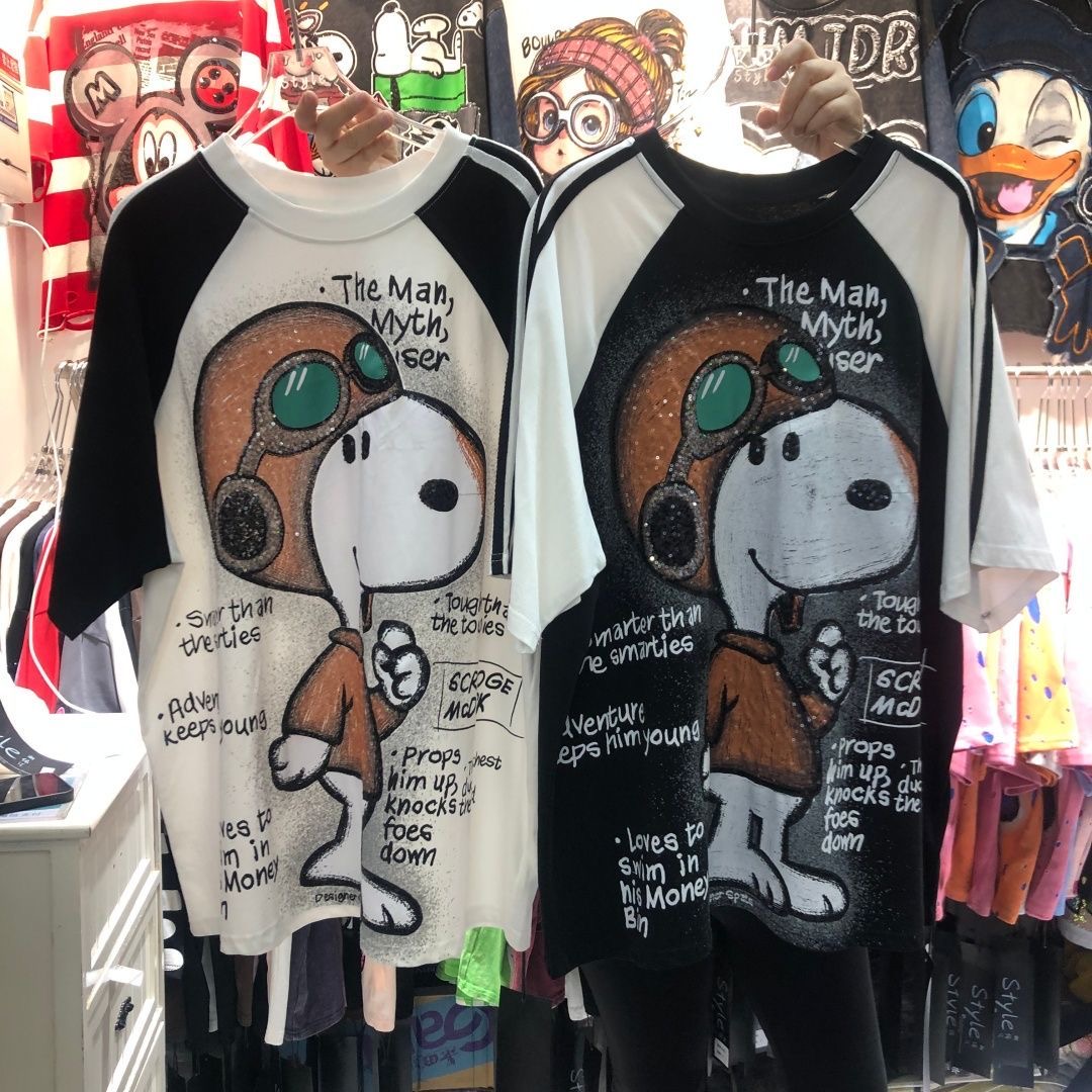 A159 - Luxury Snoopy Sequin Embroidered T-Shirt - 320g Ultra-Heavyweight Cotton Tee - Sparkling Character Graphic Oversized Boxy Fit