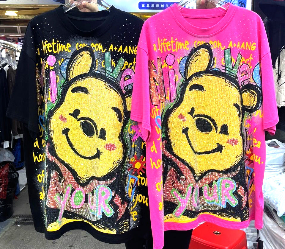 VINESU A22 - Heavy-Duty Rhinestone Winnie T-Shirt | Loose fit, suitable for 99โ165 lbs