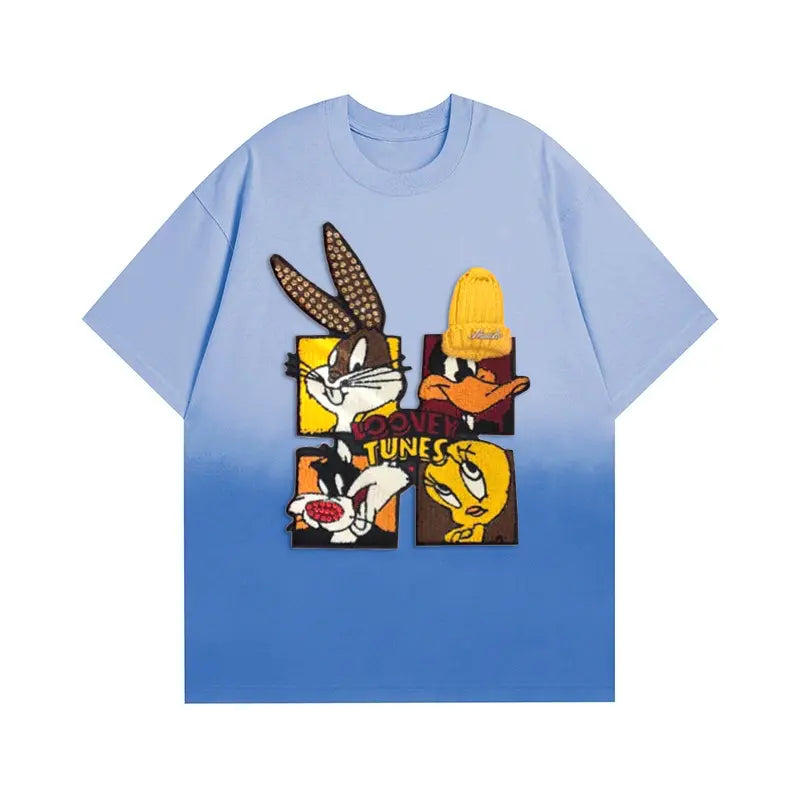 VINESU Looney Tunes - Themed Ombre Blue T - shirt: Vibrant Cartoon Style