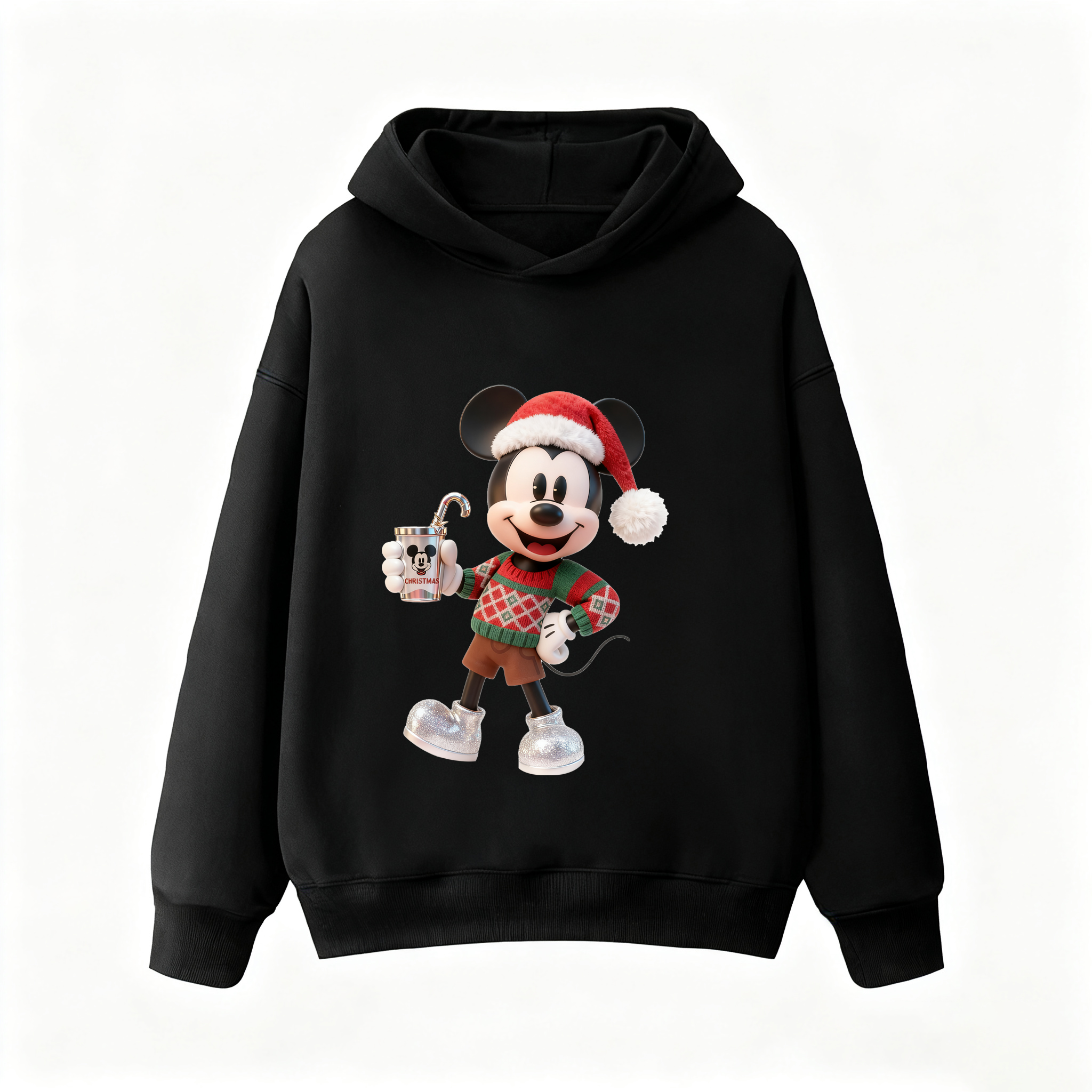Be the star of Christmas fashion! This Christmas Mickey Mouse Hoodie is all about festive vibes🎄~ Mickey’s dressed in a Santa hat, a red-green argyle sweater, and holding a Christmas cup—super cute and eye-catching, making you the center of attention this holiday season. Made with thick, skin-friendly premium fabric, it’s cozy and durable for fall and winter. The classic hoodie design is versatile, plus it has a practical pocket for small items. Whether you’re at a Christmas party or just hanging out, this hoodie lets you create a cute and warm look. A must-have for Mickey fans and Christmas lovers!