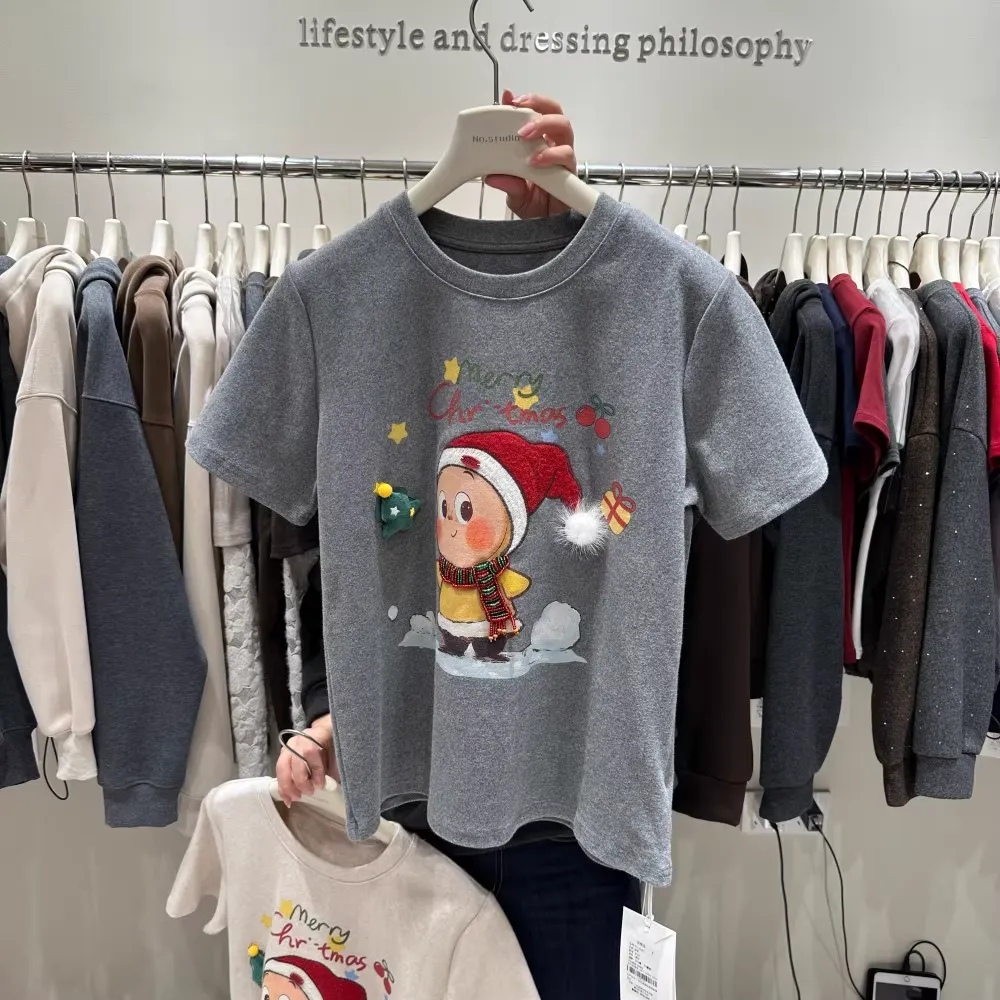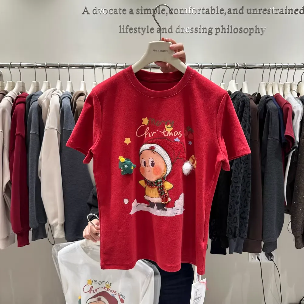 Crafted from soft, skin-friendly cotton fabric, it features an embroidered chubby Christmas doll on the front, paired with 3D accessories (stars, gift details) — those tiny touches are totally heart-melting! The matching red knit scarf adds instant festive vibes, perfect for wearing alone or layering.