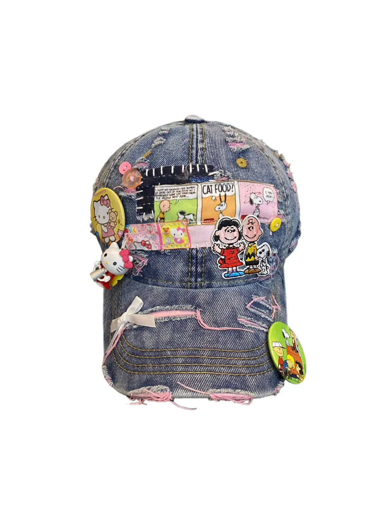 Vinesu H15 - Original Snoopy Cartoon Appliqué Patchwork Baseball Cap