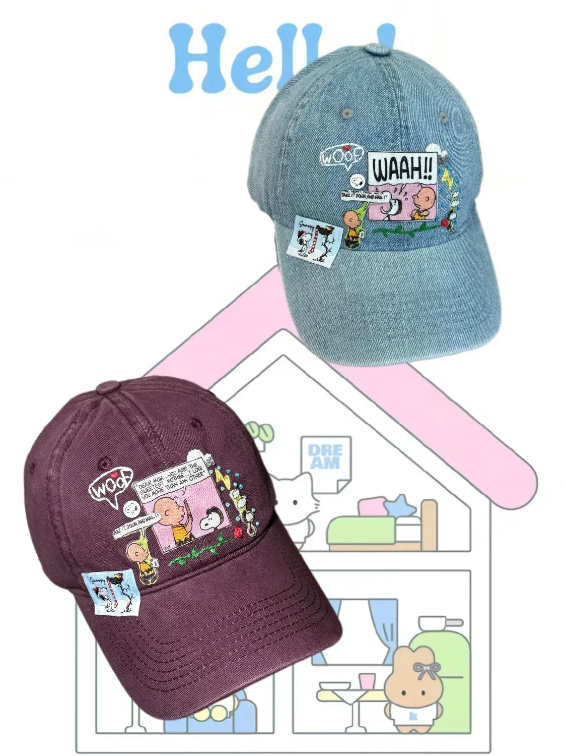 Vinesu H18 - Retro Snoopy Embroidered Baseball Cap - Vintage Washed Denim Comic Patch Hat, Aesthetic Peanuts Cartoon Dad Hat for Men & Women