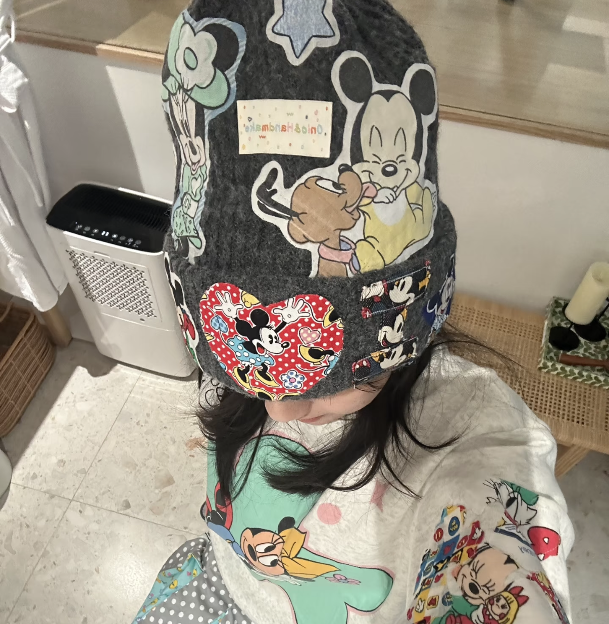 This cozy bucket hat blends Y2K nostalgia with playful Disney charm, featuring a unique dual design of all-over character prints and hand-applied fabric patches. The brim showcases a vibrant, all-over Mickey & Minnie print, while the crown is adorned with raised patches of Mickey, Minnie, and Pluto — creating a layered, textured look that stands out from basic cartoon hats. The soft fleece lining and warm wool-blend exterior keep you cozy, making it perfect for Disney park days, streetwear fits, or cold-weather errands.