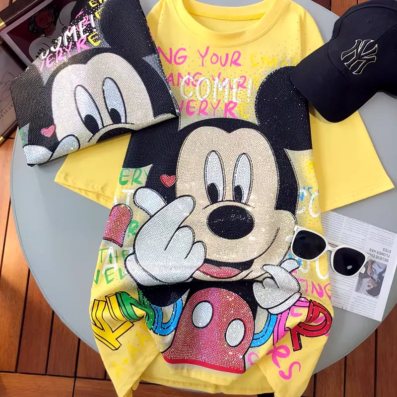 MK01 🎀 Heavy-Detail Rhinestone T-Shirt – Front & Back Graphic, Loose Fit Short Sleeve