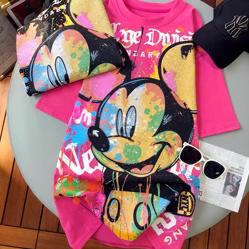Featuring an iconic Mickey Mouse design covered in full, hand-applied rhinestones, it shimmers with every movement for maximum impact. The vibrant graffiti-style print adds a playful, retro Y2K vibe, while the premium heavyweight cotton ensures a soft, breathable feel and relaxed fit for all-day comfort. Perfect for elevating your casual streetwear look and standing out from the crowd.
