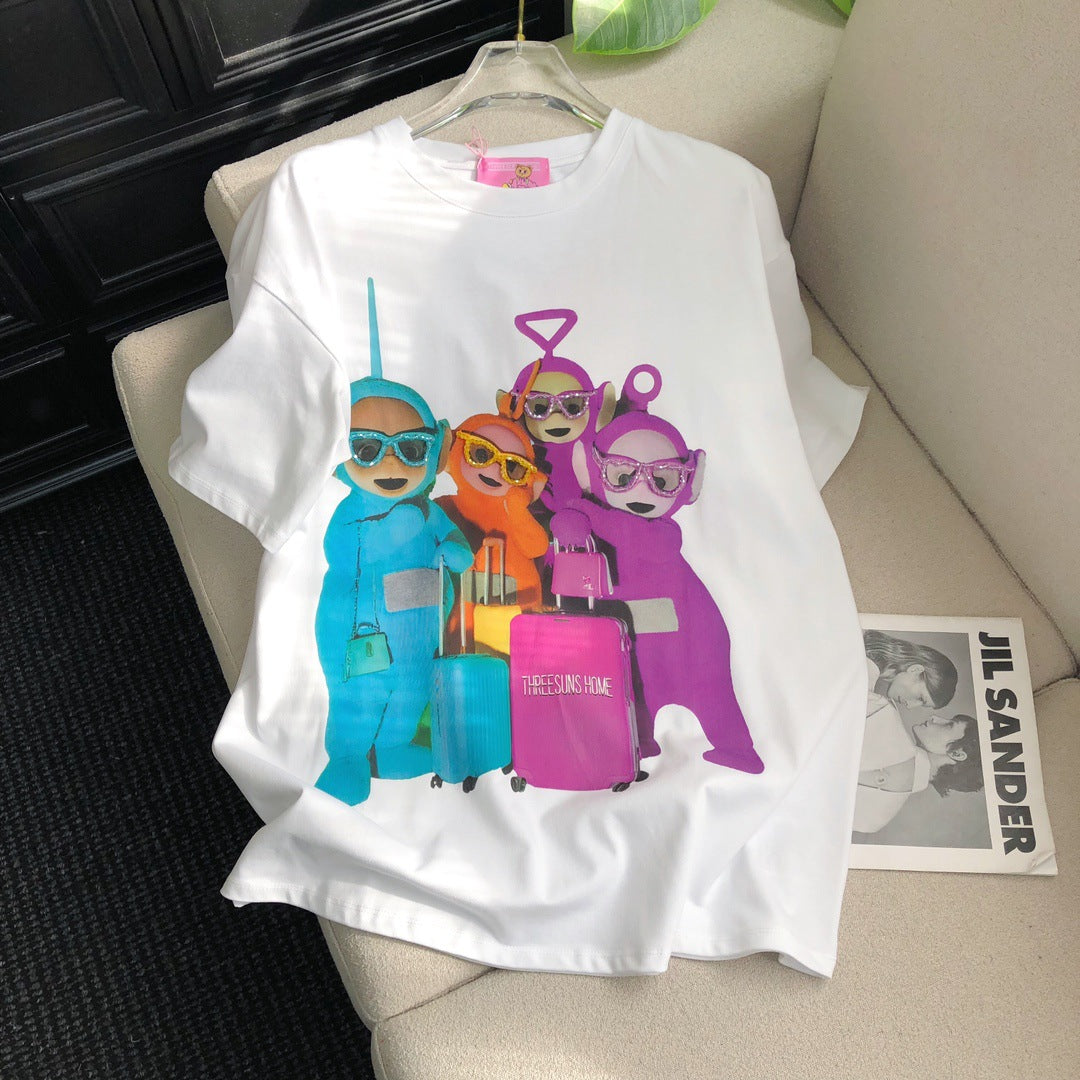 Get ready to turn heads with the Teletubbies Hand-beaded Tee—a playful masterpiece that brings childhood nostalgia to life! This unique tee features intricate hand-beaded designs inspired by Tinky Winky, Dipsy, Laa-Laa, and Po, blending whimsical charm with artisanal craftsmanship. Perfect for adding a pop of personality to your wardrobe, it’s a conversation starter that’s as fun to wear as it is to look at. Whether you're reliving your favorite childhood memories or making a bold fashion statement, this tee is your ticket to standing out in the most delightful way. Sunshine, giggles, and style—all in one tee!