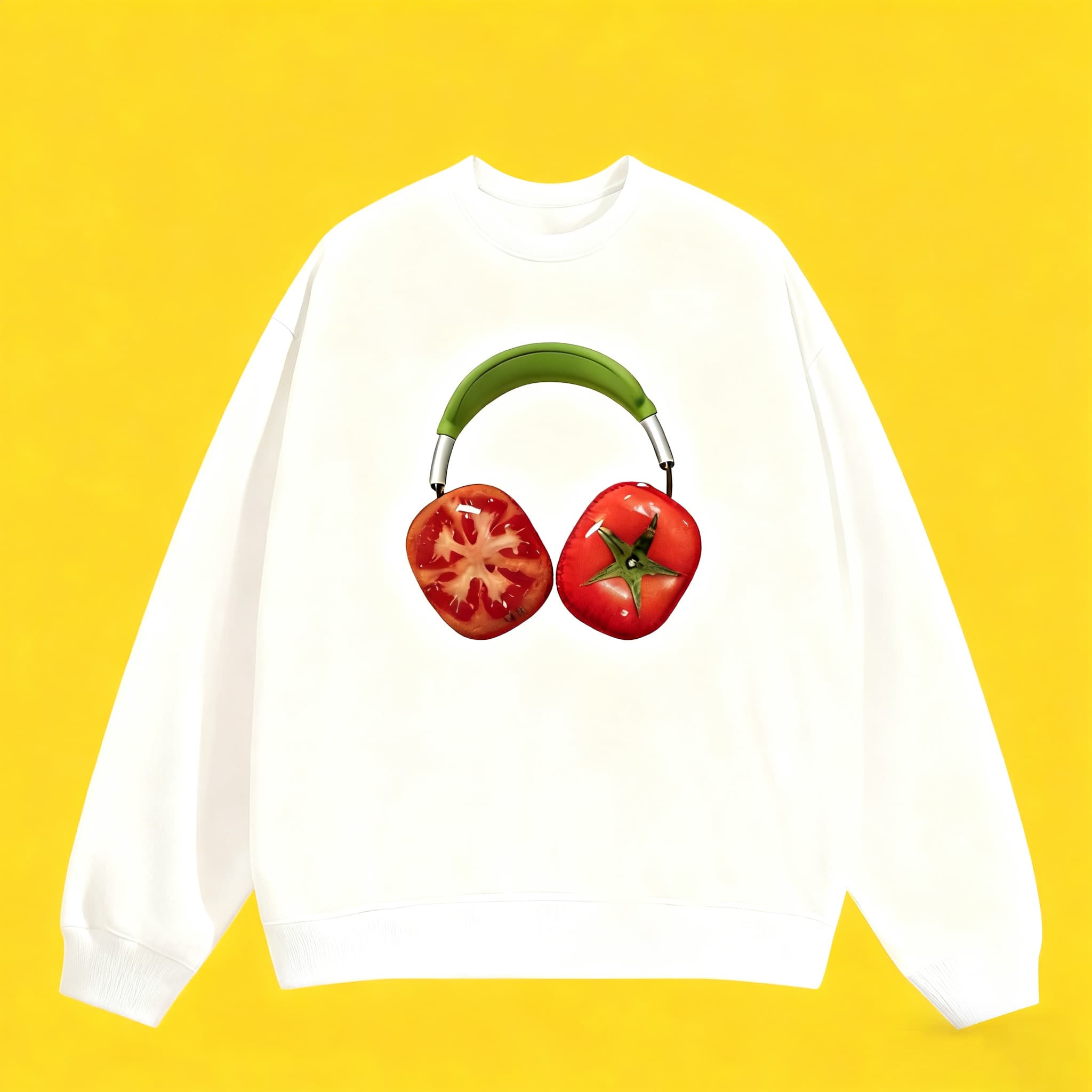 Check out this super cool crew - neck sweatshirt! 😎 It features a super fun print of tomatoes as headphones, which is totally eye - catching and unique. 🌟 The white color is fresh and versatile, easy to match with any outfit. Made with cozy fabric, it keeps you warm and comfy whether you're hanging out with friends or just relaxing at home. 🛋️ Grab it now to add a playful touch to your wardrobe! 🛍️