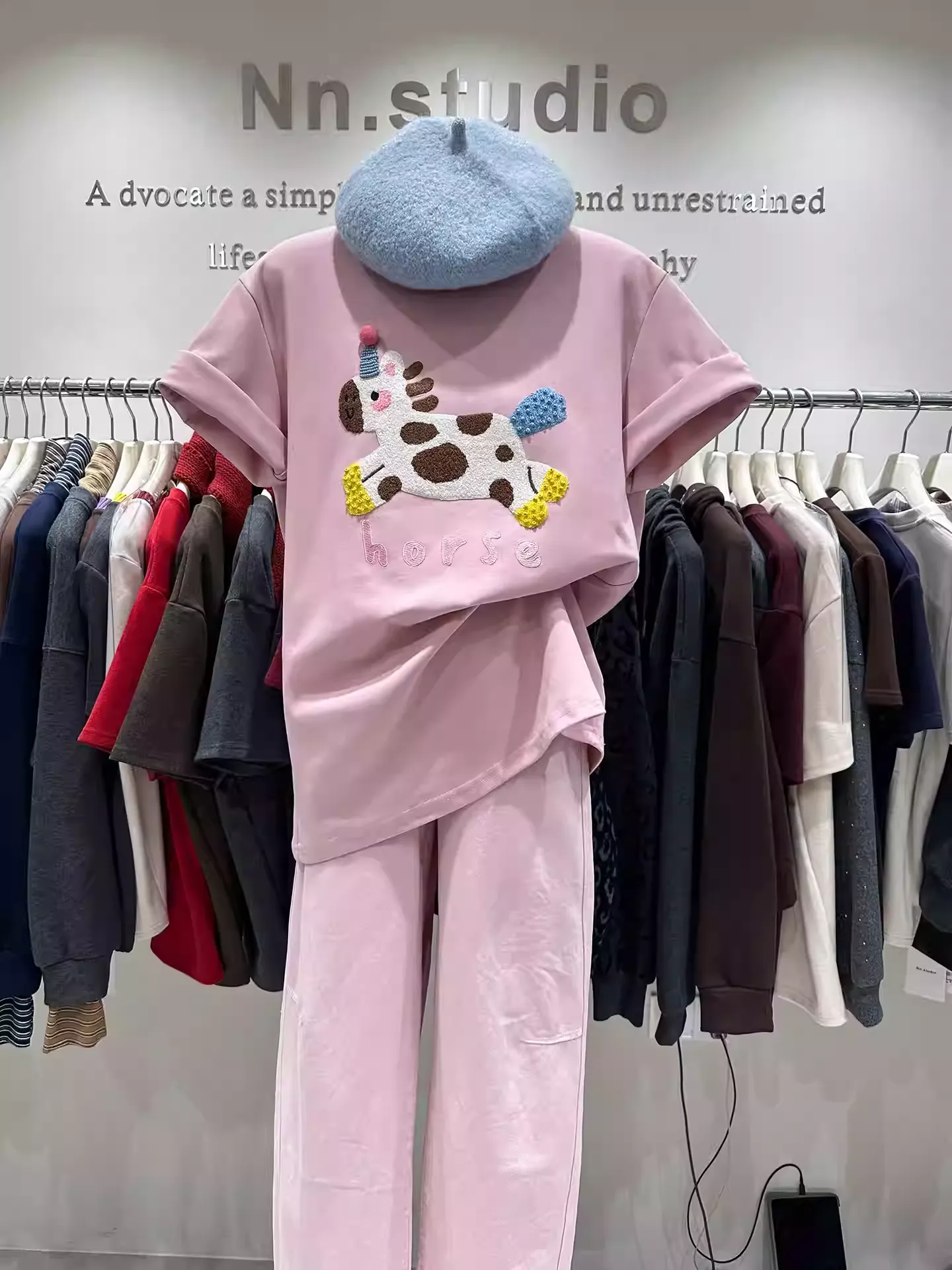 • 3D Composite Embroidery Craft:The eye-catching cow-patterned pony on the chest features 3D details (towel embroidery + bead embellishments) for a full, textured look. The "horse" embroidery matches the pony’s color scheme, adding extra charm~