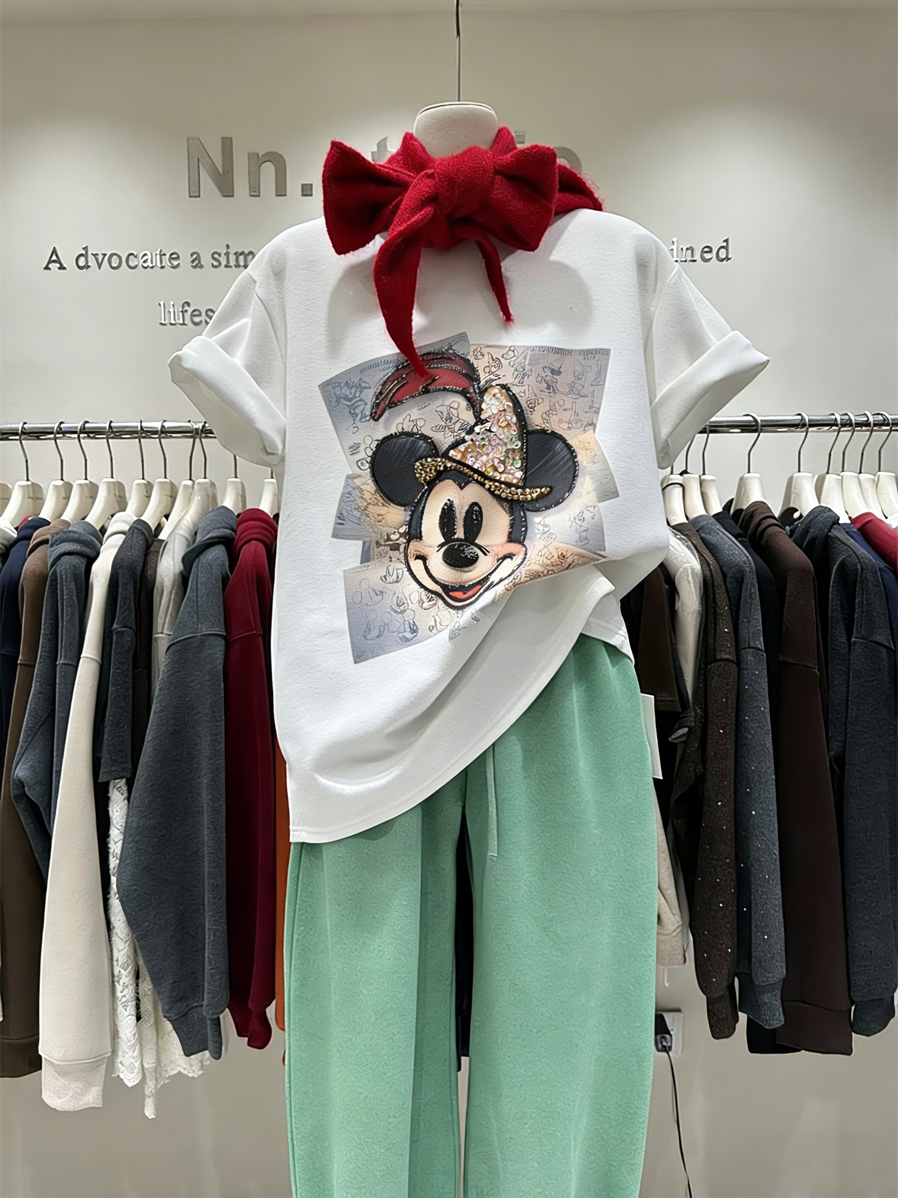 Add a touch of nostalgic charm and sparkle to your closet with this eye-catching burgundy tee. The unique design features a retro mouse illustration overlaid on a delicate sketch print, elevated by hand-embellished rhinestones and beads that create a stunning, textured effect. Made from premium cotton, the classic crew neck and relaxed silhouette offer a timeless fit that flatters every body type. Whether you’re dressing up for brunch or keeping it casual for a day out, this tee is the perfect blend of art, comfort, and subtle glamour.