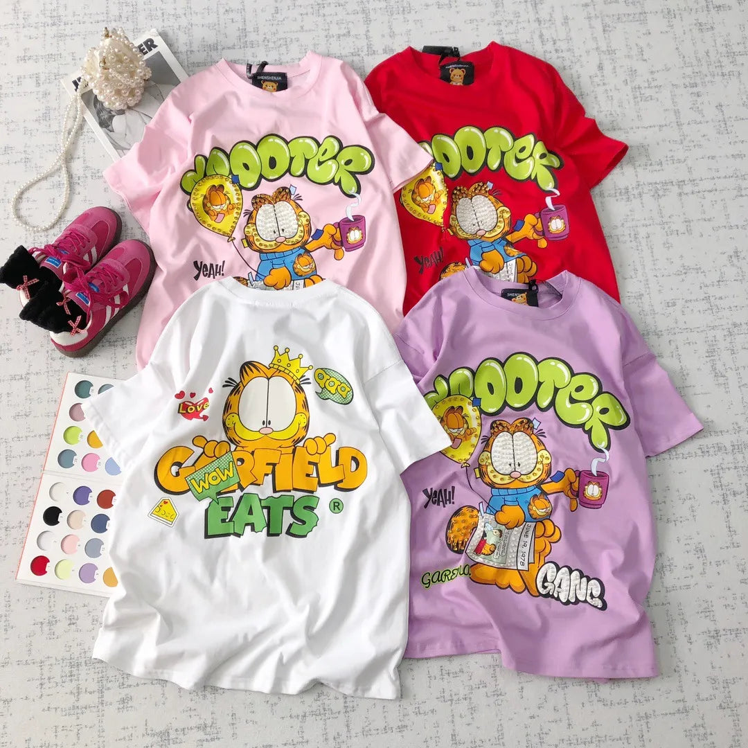 - Unique double-sided cartoon cat graffiti-style graphic print