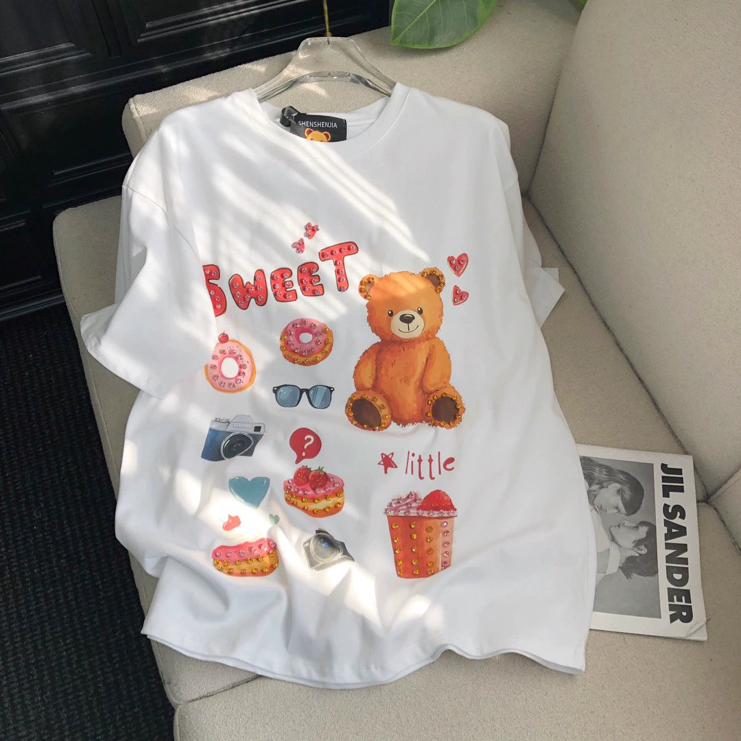 VINESU A17 - "Sweet" Bear Hand-Embellished T-Shirt