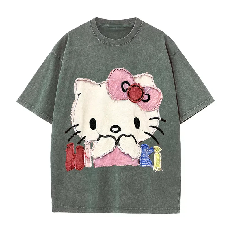 This vintage washed cotton tee stars a 3D patchwork Hello Kitty design (no flat prints!) — think layered fabrics, frayed edges, and playful embellishments that pop.