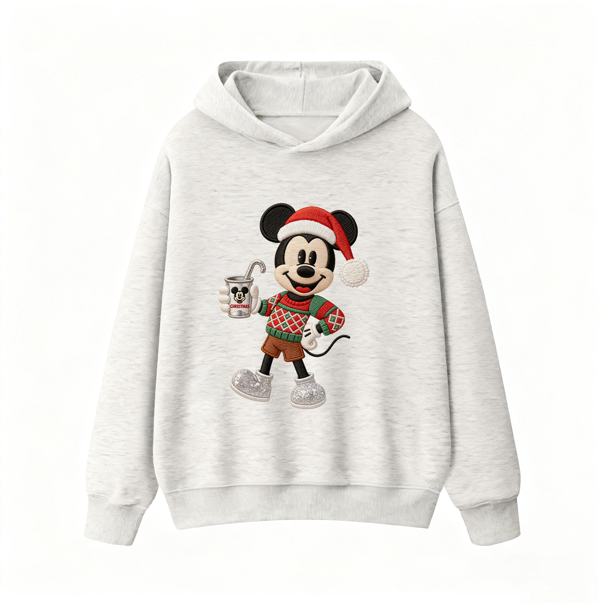 Be the star of Christmas fashion! This Christmas Mickey Mouse Hoodie is all about festive vibes🎄~ Mickey’s dressed in a Santa hat, a red-green argyle sweater, and holding a Christmas cup—super cute and eye-catching, making you the center of attention this holiday season. Made with thick, skin-friendly premium fabric, it’s cozy and durable for fall and winter. The classic hoodie design is versatile, plus it has a practical pocket for small items. Whether you’re at a Christmas party or just hanging out, this hoodie lets you create a cute and warm look. A must-have for Mickey fans and Christmas lovers!