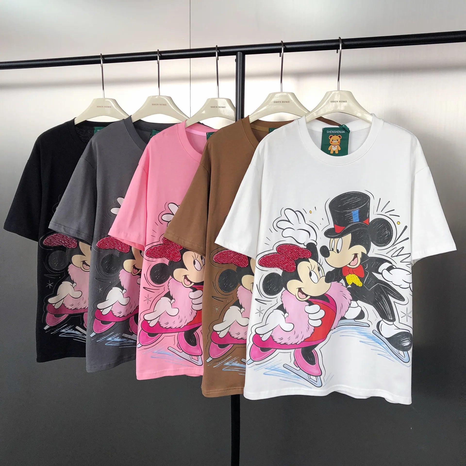 VINESU MKT09 - Vintage Couple Mouse Beaded & Sequin T-Shirt