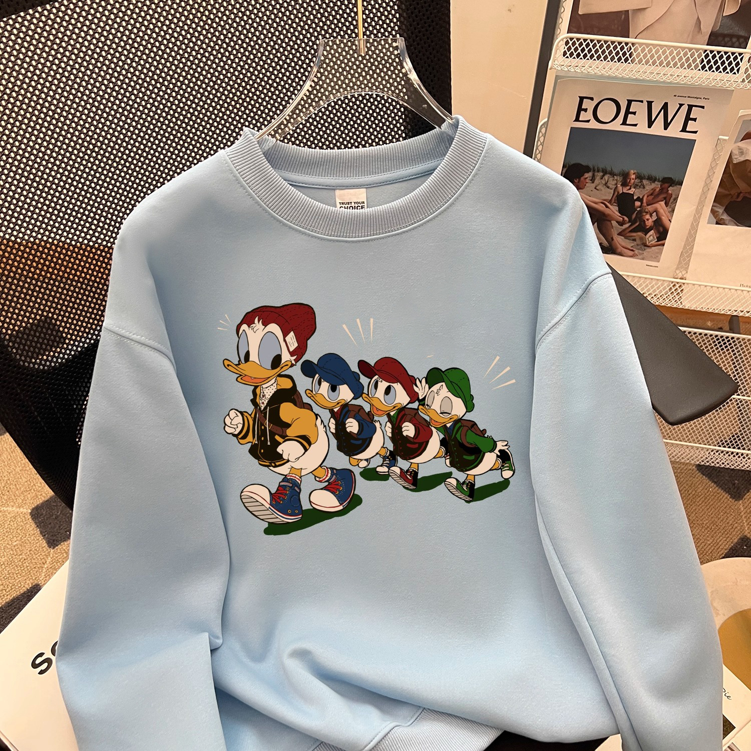 This sweatshirt nails the blend of American vintage and street fashion! Crafted from thick, cozy premium fabric, it rejects cheap thin materials—soft and substantial on the skin, warm and structured, and won’t lose shape even after repeated wears. The vintage cartoon duck crew print is story-packed—these ducks rock trendy outfits, like a street squad straight out of a retro American comic, full of details and fun🔥. The classic crewneck design is versatile; whether you’re hitting the streets or hanging out with friends at a streetwear shop, this sweatshirt lets you effortlessly own that American street style. You can even coordinate a “cartoon duck crew” look with your crew👫, with comfort and quality both on point!